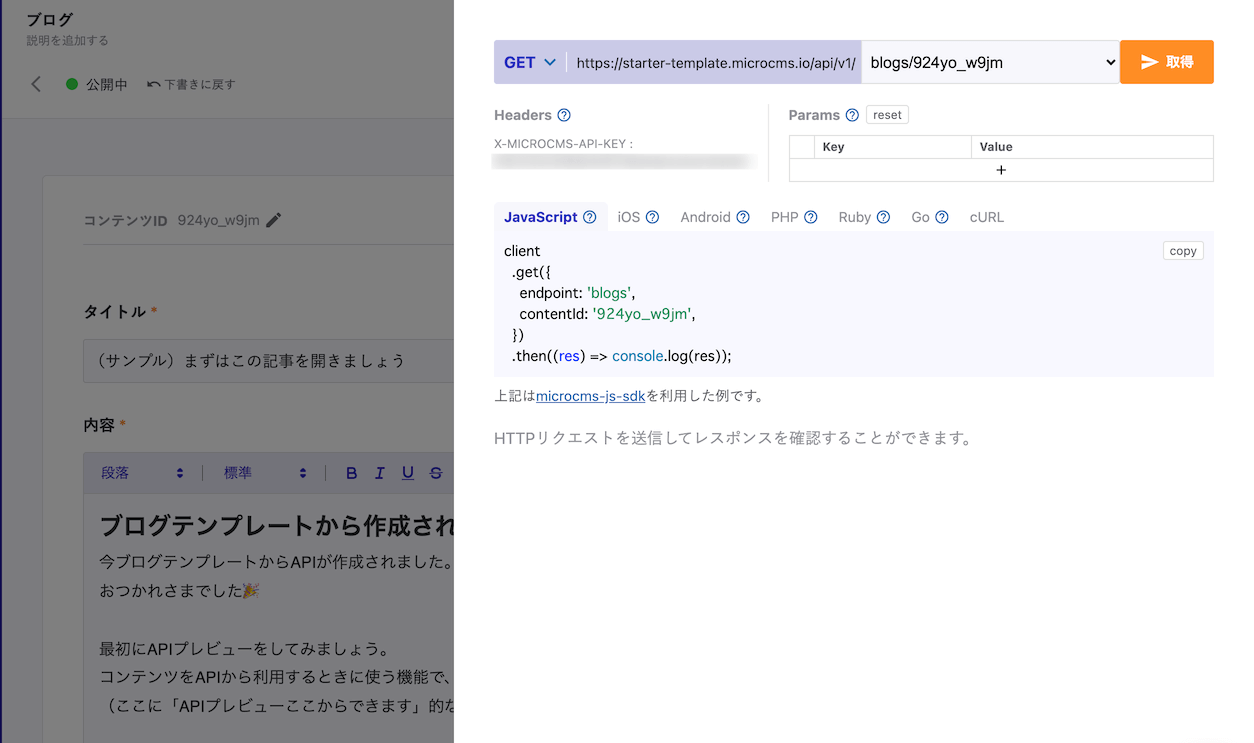 ブログテンプレートからAPIを作成しました。